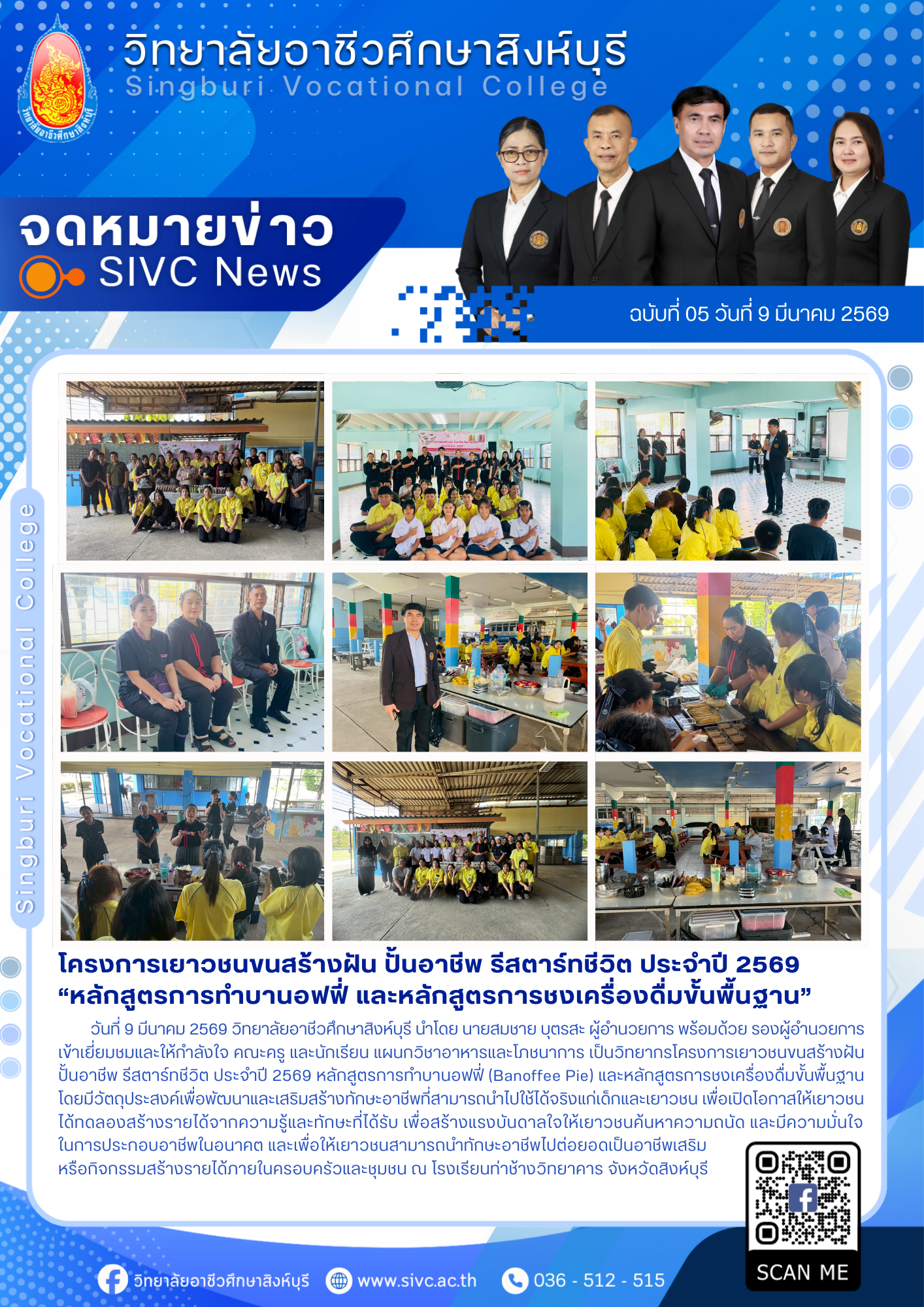 ฉบับที่ 05 (09/03/69) โครงการเยาวชนขนสร้างฝัน ปั้นอาชีพ รีสตาร์ทชีวิต ประจำปี 2569 “หลักสูตรการทำบานอฟฟี่ และหลักสูตรการชงเครื่องดื่มขั้นพื้นฐาน” 26 มี.ค. 256926 มี.ค. 2026นฤมล แสงหงษ์จดหมายข่าว Post Views: 4