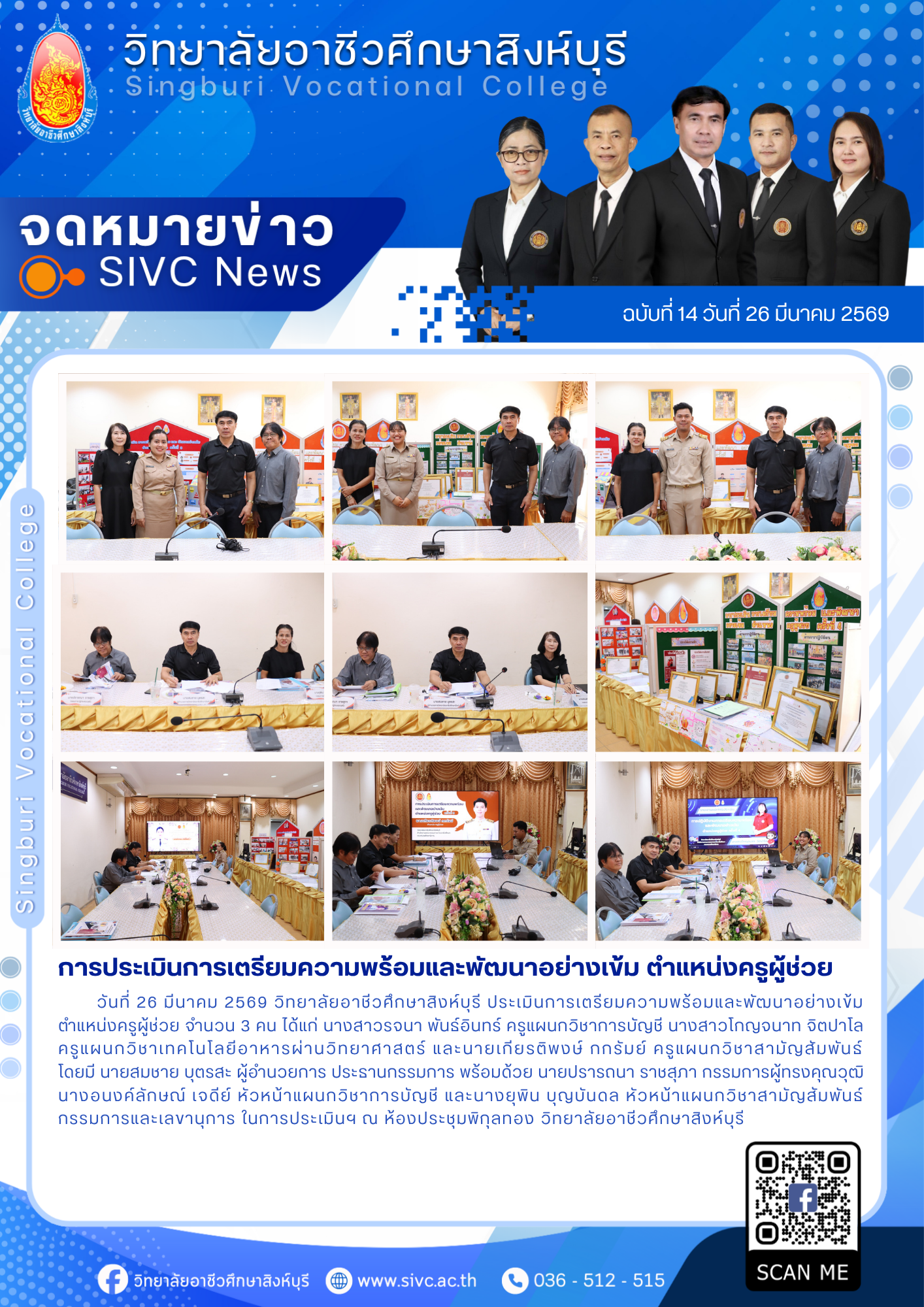 ฉบับที่ 14 (26/03/69) การประเมินการเตรียมความพร้อมและพัฒนาอย่างเข้ม ตำแหน่งครูผู้ช่วย 2 เม.ย. 2569นฤมล แสงหงษ์จดหมายข่าว Post Views: 3