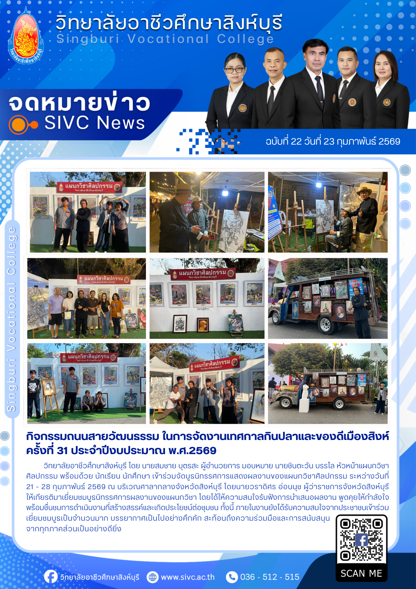 ฉบับที่ 22 (23/02/69) กิจกรรมถนนสายวัฒนธรรม ในการจัดงานเทศกาลกินปลาและของดีเมืองสิงห์ ครั้งที่ 31 ประจำปีงบประมาณ พ.ศ.2569 23 ก.พ. 2569นฤมล แสงหงษ์จดหมายข่าว Post Views: 4