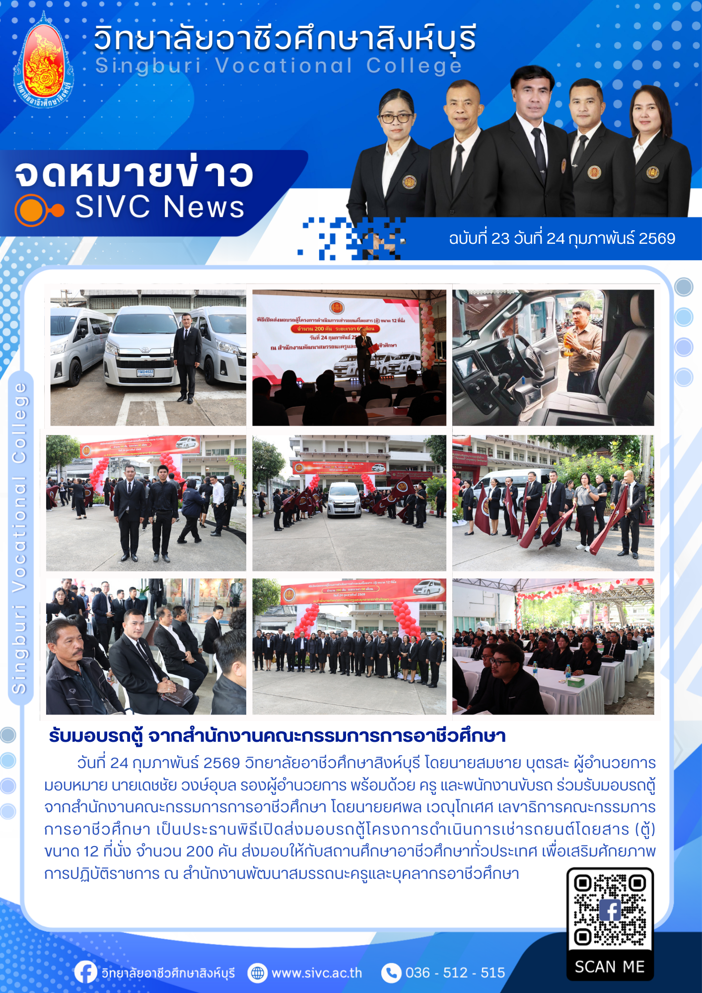 ฉบับที่ 23 (24/02/2569) รับมอบรถตู้ จากสำนักงานคณะกรรมการการอาชีวศึกษา 25 ก.พ. 2569นฤมล แสงหงษ์จดหมายข่าว Post Views: 7