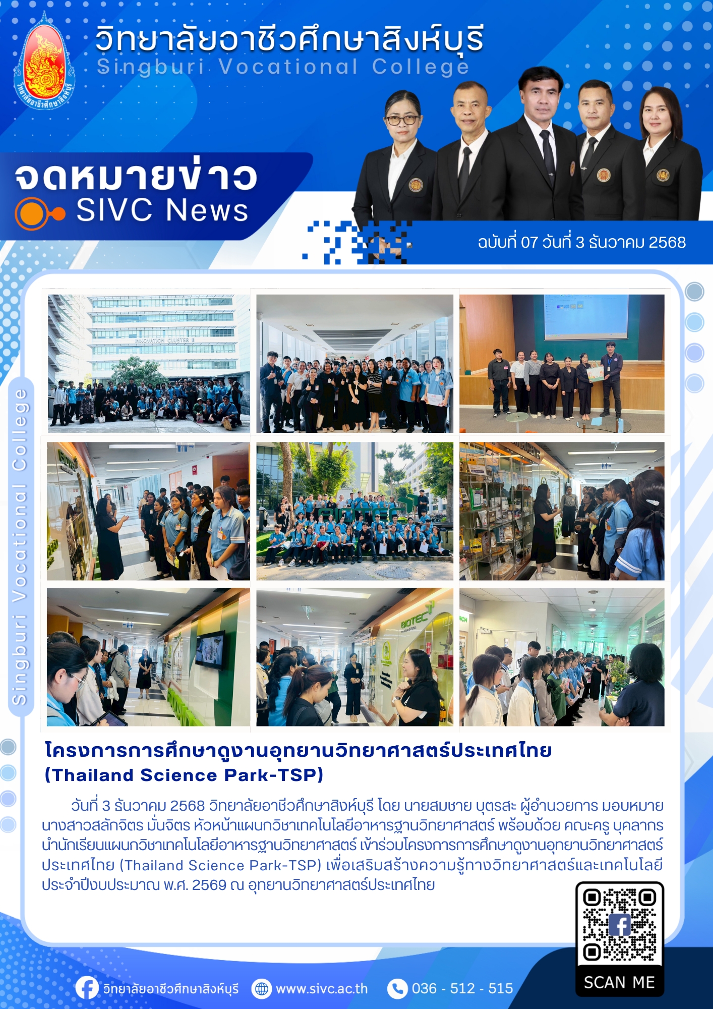 ฉบับที่07(03/12/68)#โครงการการศึกษาดูงานอุทยานวิทยาศาสตร์ประเทศไทย (Thailand Science Park-TSP) 3 ธ.ค. 256812 ธ.ค. 2025ratchakarn7จดหมายข่าว Post Views: 1