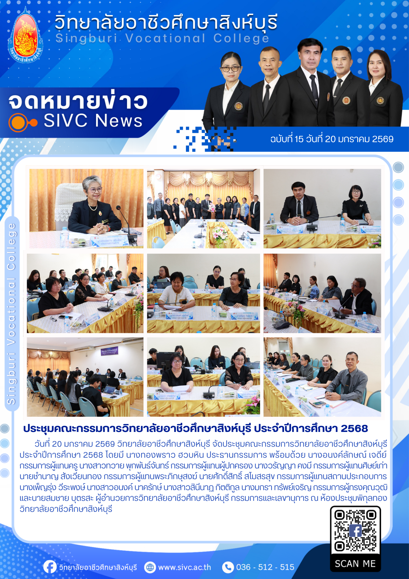 ฉบับที่15(20/01/69)ประชุมคณะกรรมการวิทยาลัยอาชีวศึกษาสิงห์บุรี ประจำปีการศึกษา 2568 22 ม.ค. 256923 ม.ค. 2026นฤมล แสงหงษ์จดหมายข่าว Post Views: 7
