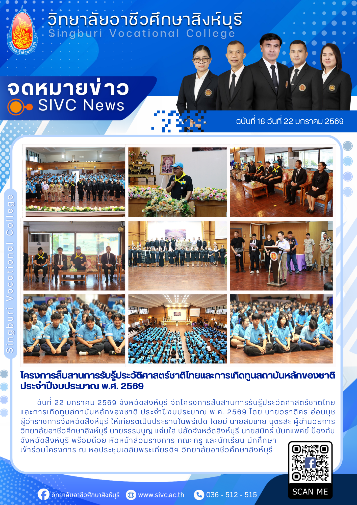 ฉบับที่18(22/01/69)โครงการสืบสานการรับรู้ประวัติศาสตร์ชาติไทยและการเทิดทูนสถาบันหลักของชาติ ประจำปีงบประมาณ พ.ศ.2569 23 ม.ค. 2569นฤมล แสงหงษ์จดหมายข่าว Post Views: 7