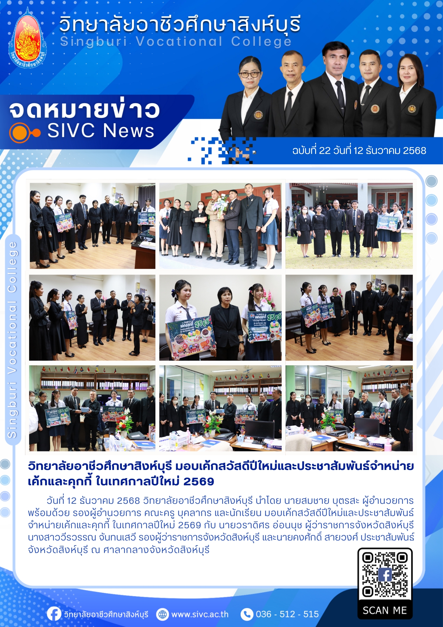 ฉบับที่22(12/12/68)#วิทยาลัยอาชีวศึกษาสิงห์บุรี มอบเค้กสวัสดีปีใหม่และประชาสัมพันธ์จำหน่่ายเค้กและคุกกี้ ในเทศกาลปีใหม่ 2569 12 ธ.ค. 256812 ธ.ค. 2025ratchakarn7จดหมายข่าว Post Views: 5