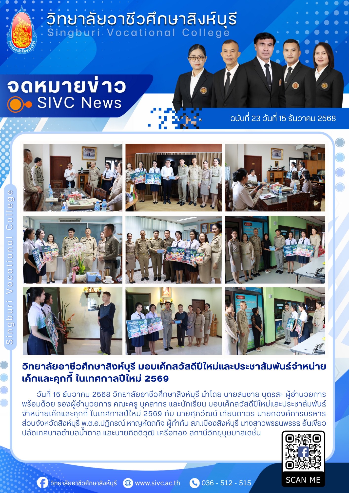 ฉบับที่23(15/12/68)#วิทยาลัยอาชีวศึกษาสิงห์บุรี มอบเค้กสวัสดีปีใหม่และประชาสัมพันธ์จำหน่ายเค้กและคุกกี้ ในเทศกาลปีใหม่ 2569 15 ธ.ค. 256817 ธ.ค. 2025นฤมล แสงหงษ์จดหมายข่าว Post Views: 4