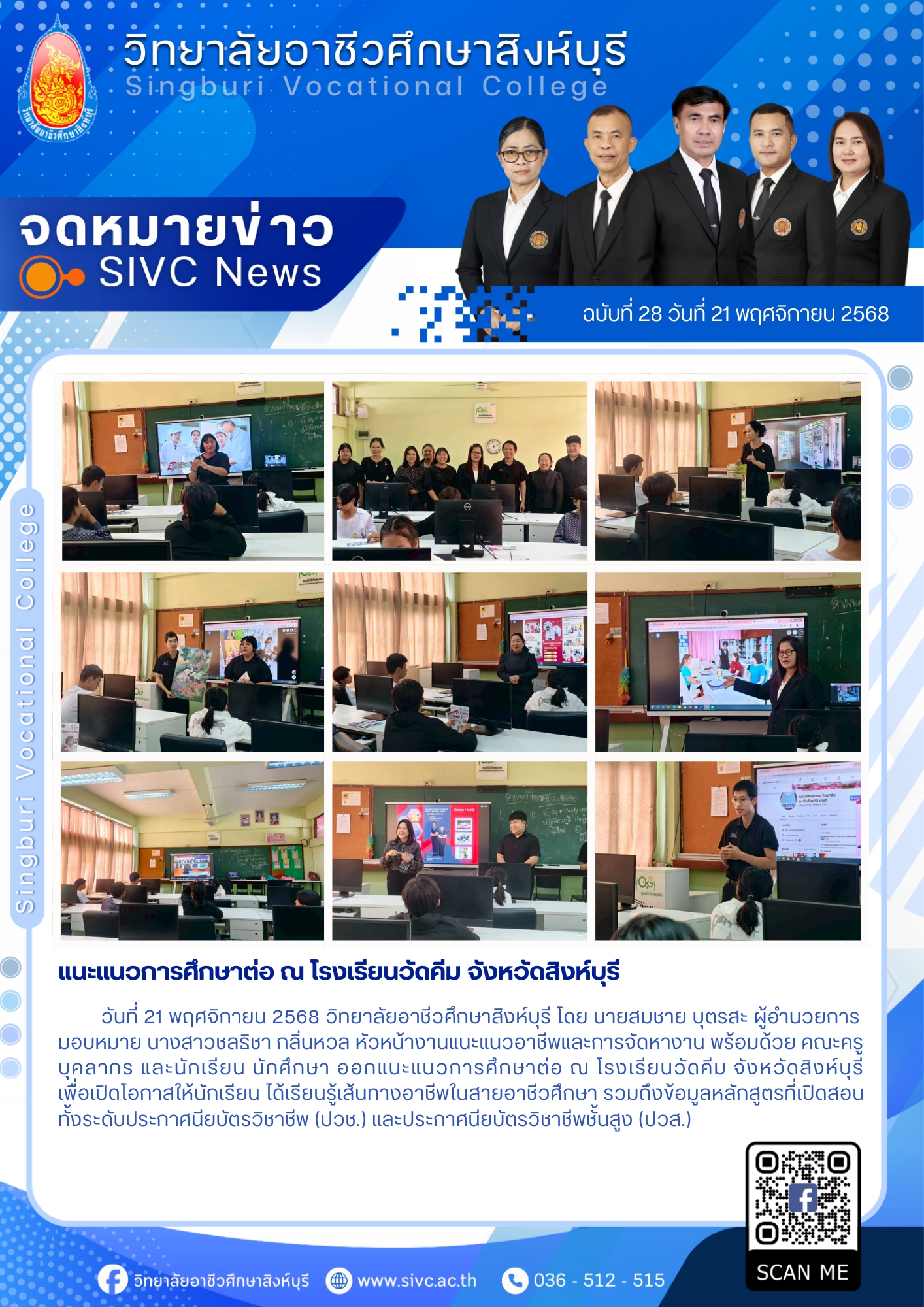 ฉบับที่28(21/11/68)#แนะแนวการศึกษาต่อ ณ โรงเรียนวัดคีม จังหวัดสิงห์บุรี 21 พ.ย. 25681 ธ.ค. 2025ratchakarn7จดหมายข่าว Post Views: 1