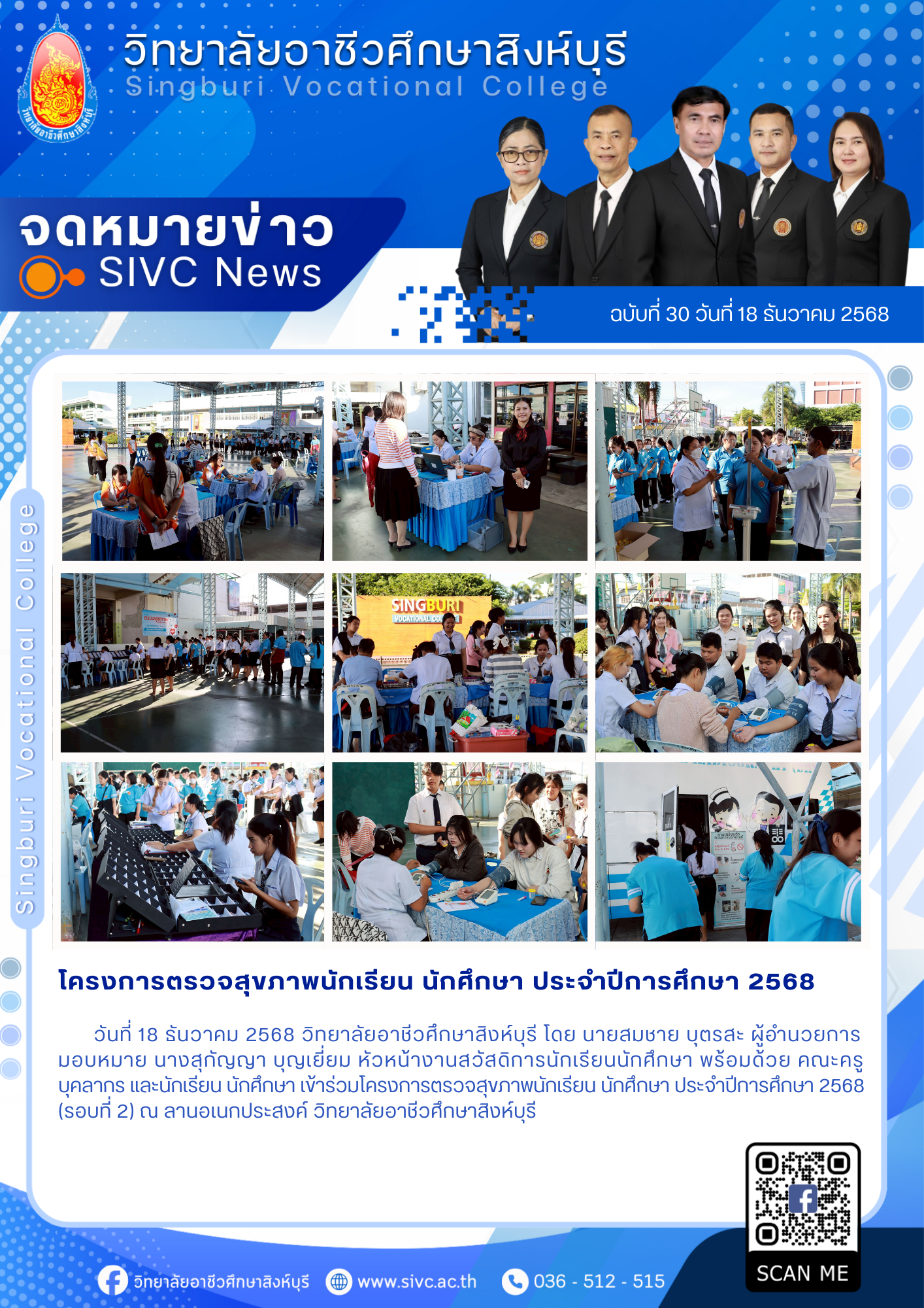 ฉบับที่30(18/12/68)โครงการตรวจสุขภาพนักเรียน นักศึกษา ประจำปีการศึกษา 2568 18 ธ.ค. 256818 ธ.ค. 2025นฤมล แสงหงษ์จดหมายข่าว Post Views: 3