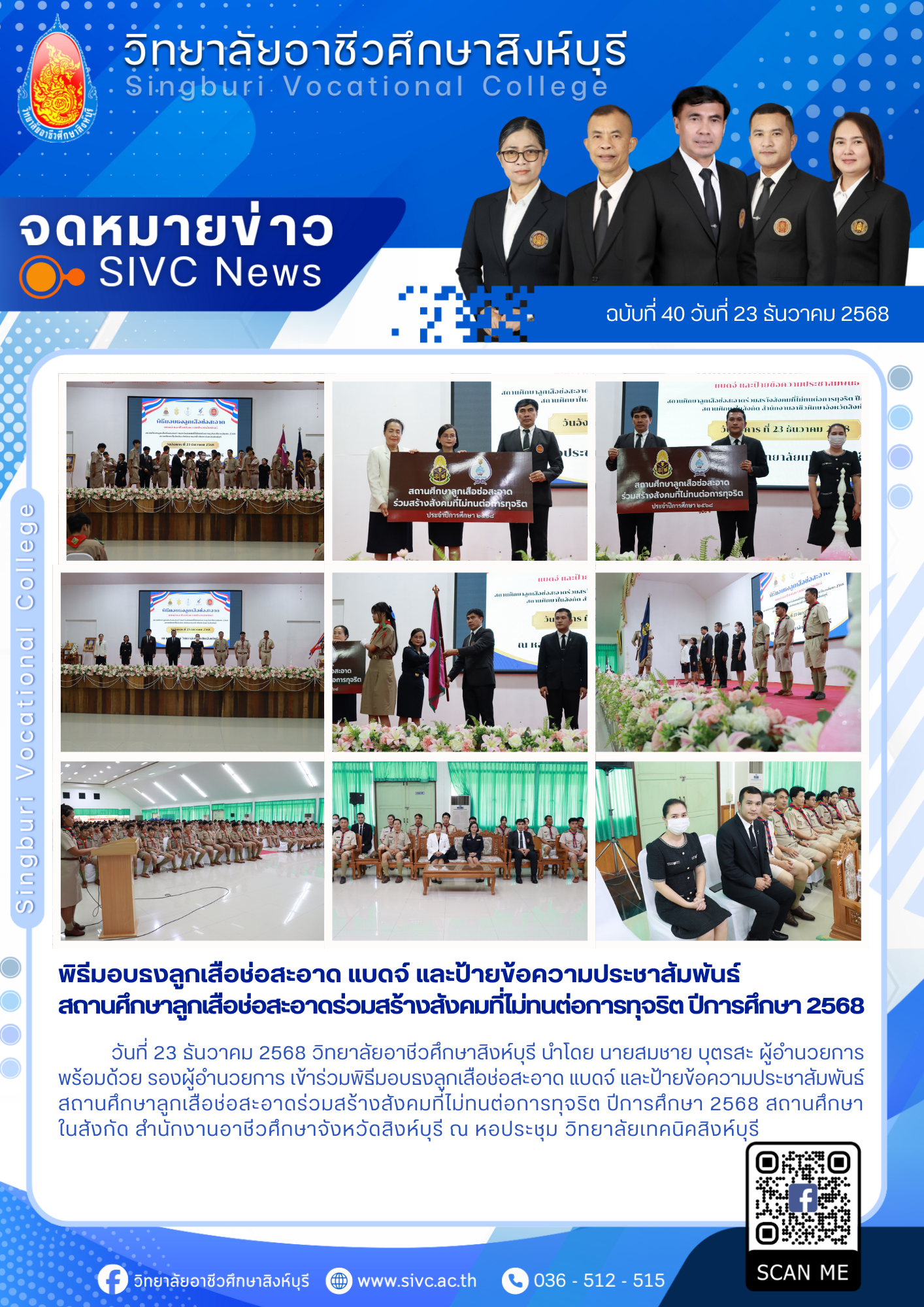 ฉบับที่40(23/12/68)พิธีมอบธงลูกเสือช่อสะอาด แบดจ์ และป้ายข้อความประชาสัมพันธ์ สถานศึกษาลูกเสือช่อสะอาดร่วมสร้างสังคมที่ไม่ทนต่อการทุจริต ปีการศึกษา 2568