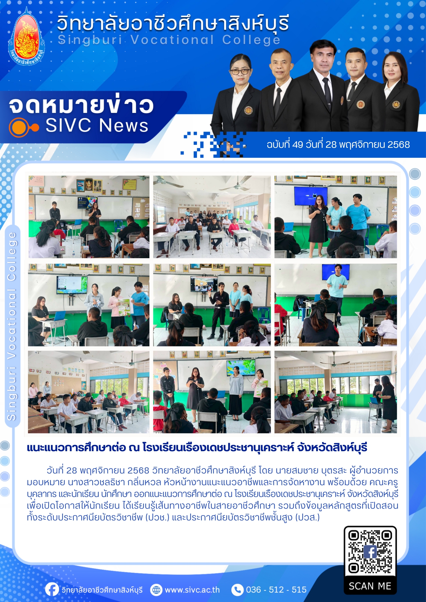 ฉบับที่49(28/11/68)#แนะแนวการศึกษาต่อ ณ โรงเรียนเรืองเดชประชานุเคราะห์ จังหวัดสิงห์บุรี 28 พ.ย. 25682 ธ.ค. 2025ratchakarn7จดหมายข่าว Post Views: 3