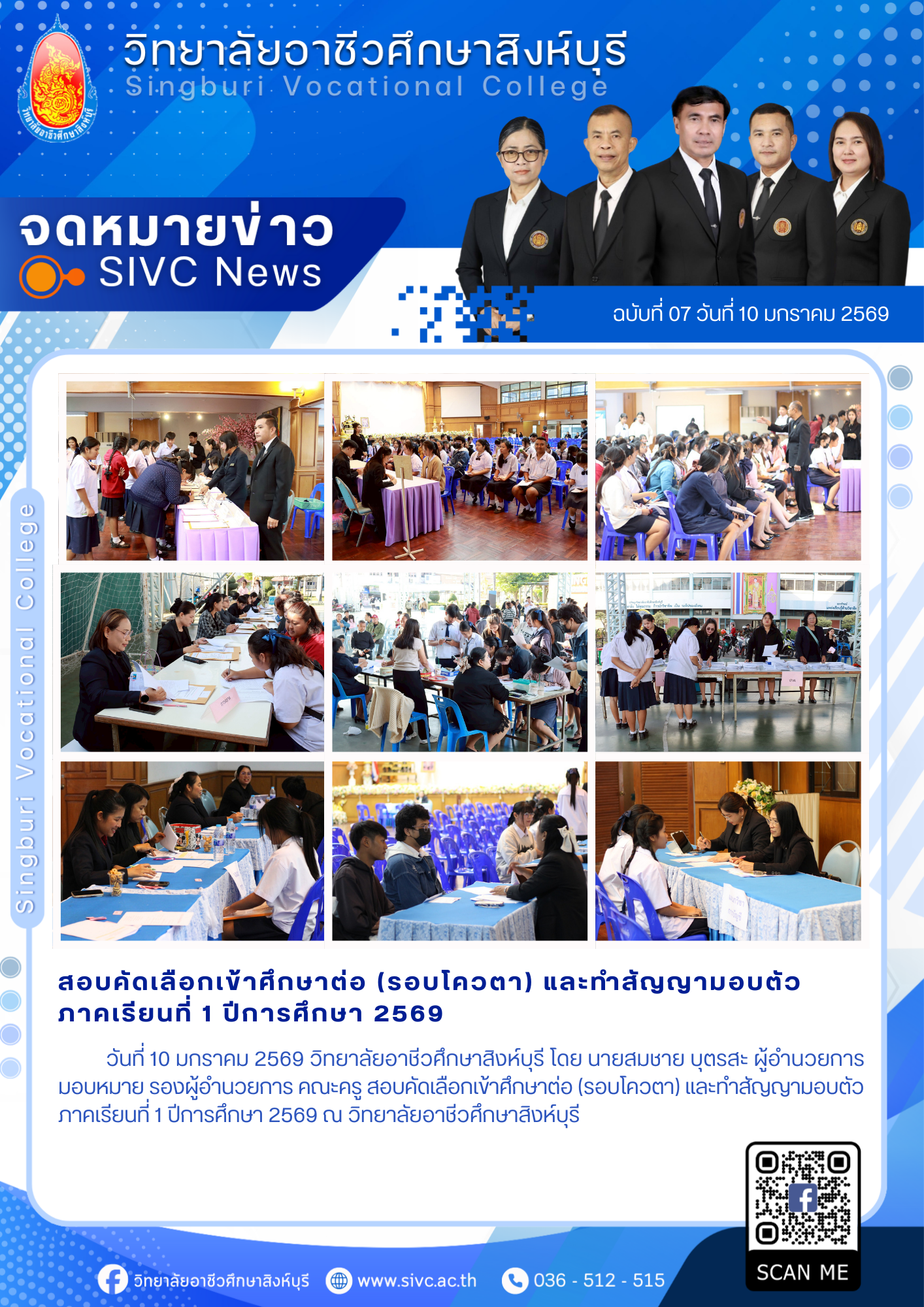 ฉบับที่7(10/01/69)สอบคัดเลือกเข้าศึกษาต่อ (รอบโควตา) และทำสัญญามอบตัว ภาคเรียนที่ 1 ปีการศึกษา 2569 13 ม.ค. 256913 ม.ค. 2026นฤมล แสงหงษ์จดหมายข่าว Post Views: 6