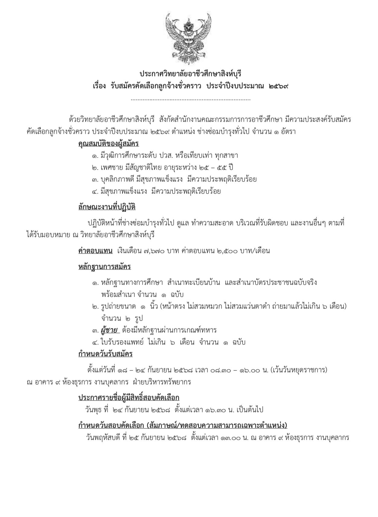ประกาศเรื่อง รับสมัครคัดเลือกลูกจ้างชั่วคราว ประจำปีงบประมาณ 2569 17 ก.ย. 25682 ต.ค. 2025ratchakarn7ข่าวรับสมัครงาน Post Views: 9
