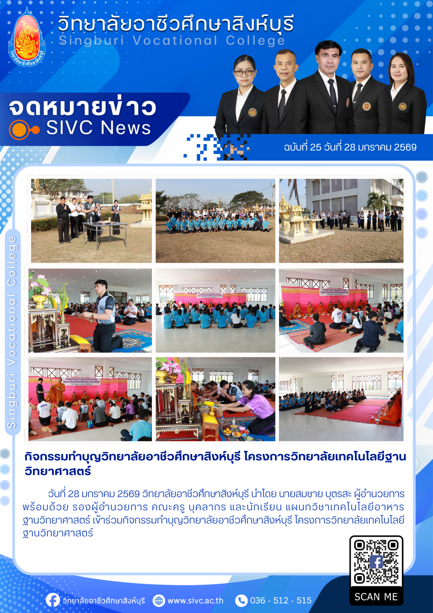 25(28/01/69)กิจกรรมทำบุญวิทยาลัยอาชีวศึกษาสิงห์บุรี โครงการวิทยาลัยเทคโนโลยีฐาน วิทยาศาสตร์ 30 ม.ค. 2569นฤมล แสงหงษ์จดหมายข่าว Post Views: 2