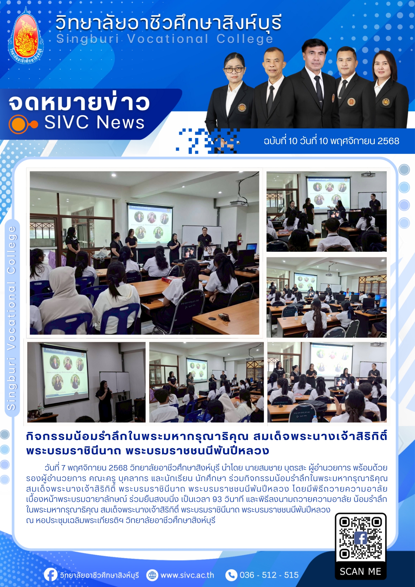 ฉบับที่10(10/11/68)#กิจกรรมน้อมรำลึกในพระมหากรุณาธิคุณ สมเด็จพระนางเจ้าสิริกิติ์ พระบรมราชินีนาถ พระบรมราชชนนีพันปีหลวง 10 พ.ย. 256830 พ.ย. 2025ratchakarn7จดหมายข่าว Post Views: 5