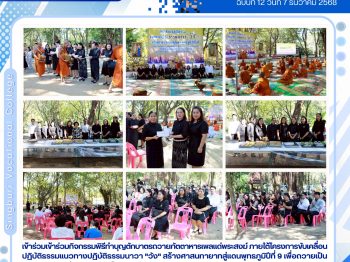 ฉบับที่12(07/12/68)#เข้าร่วมกิจกรรมพิธีทำบุญตักบาตรถวายภัตตาหารเพลแด่พระสงฆ์ ภายใต้โครงการขับเคลื่อนปฏิบัติธรรมแนวทางปฏิบัติธรรมนาวา”วัง” สร้างศาสนทายาทสู่แดนพุทธภูมิปีที่ 9 เพื่อถวายเป็นพระราชกุศลแด่พระบาทสมเด็จพระบรมชนกาธิเบศร มหาภูมิผลอดุลยเดชมหาราช บรมนาถบพิตรและเทิดพระเกียรติพระบามสมเด็จพระวชิรเกล้าเจ้าอยู่หัว และน้อมอุทิศถวายเป็นพระราชกุศลแด่สมเด็จพระนางเจ้าสิริกิตติ์ พระบรมราชินีนาถ พระบรมราชชนนีพันปีหลวง 7 ธ.ค. 256812 ธ.ค. 2025ratchakarn7จดหมายข่าว