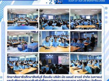 ฉบับที่37(26/11/68)#วิทยาลัยอาชีวศึกษาสิงห์บุรี ต้อนรับ บริษัท มัด แอนด์ ฮาวด์ จำกัด (มหาชน) และรับฟังการประชาสัมพันธ์เพื่อแนะนำสถานประกอบการ แก่นักเรียน นักศึกาา ก่อนฝึกงาน ฝึกอาชีพ 26 พ.ย. 25682 ธ.ค. 2025ratchakarn7จดหมายข่าว