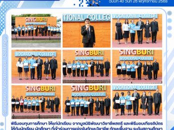 ฉบับที่40(26/11/68)#พิธีมอบทุนการศึกษาให้แก่นักเรียนจากมูลนิธิพัฒนาวิชาชีพสตรีและพิธีมอบเกียรติบัตรให้กับนักเรียน นักศึกษา ที่เข้าร่วมการแข่งขันทักษะวิชาชีพ ทักษะพื้นฐาน ระดับสถานศึกษา ประจำปี 2568 และคณะกรรมการดำเนินงานองค์การนักวิชาชีพในอนาคตแห่งประเทศไทย วิทยาลัยอาชีวศึกษาสิงห์บุรี 26 พ.ย. 25682 ธ.ค. 2025ratchakarn7จดหมายข่าว